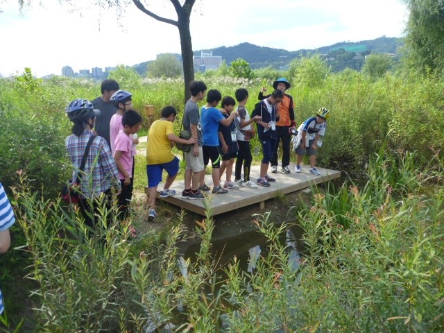 식사 후에는 본격적인 생태체험학습 프로그램이 진행되는데 먼저 생태계의 보고라 불리는 ‘둔촌동습지’로 이동해 맑은 공기와 함께 동식물들을 만나본다. ‘둔촌동습지’에서는 습지에만 자라는 희귀식물과 천연기념물로 지정된 황조롱이·꾀꼬리·오색딱따구리 등 도심에서 보기 힘든 조류를 관찰해 아동들의 자연보호의식 고취 및 학습효과를 기대할 수 있다.