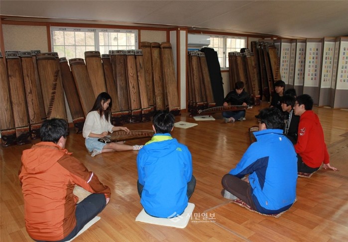최근 서울 강남경찰서는 북한이탈청소년의 빠른 대한민국 정착에 도움을 주고자 성남에 위치한 한 국악교육센터와 연계해 궁중악기 다루는 법을 교육하는 등 전통문화 계승교육을 실시했다. 사진은 탈북청소년들이 국악을 감상하며 가야금연주법을 배우고 있는 모습. (사진제공=강남경찰서)
