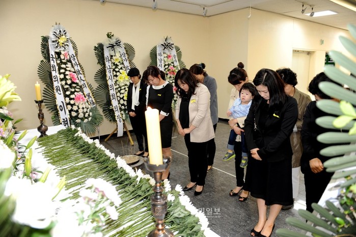 30일 경기 하남시가 세월호 침몰사고로 희생된 고인들의 명복을 빌고 애도를 표현하기 위해 시청 2층 대회의실에 합동분향소를 열었다. 이 분향소는 합동 영결식이 열리는 날까지 오전 7시~오후 10시에 운영한다. 사진은 합동분향소를 찾은 시민들이 조문 중인 모습. (사진제공=하남시청)