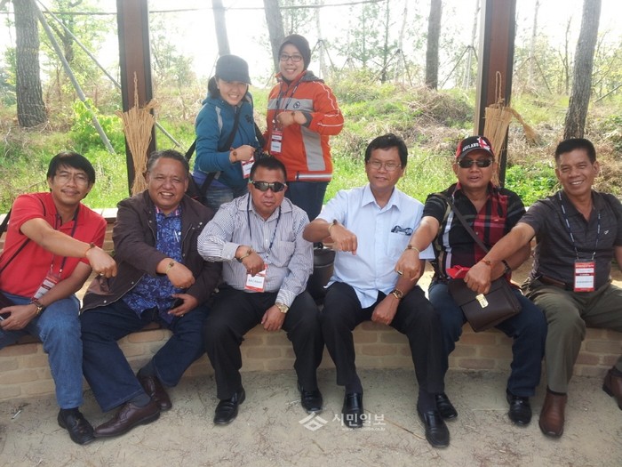 경기 고양시의 '2014 고양 국제꽃박람회' 참가 국제 교류도시 몽골·중국·스리랑카·대만·인도네시아 외빈들이 지난 24일 생태교육을 마쳤다. 외빈들은 지난 22일부터 고양 생태공원을 방문해 관계자로부터 생태습지, 교육센터, 테마 수목원 등 생태공원의 주요시설과 공원 운영에 대한 설명을 들은 후 생태해설가와 공원을 둘러보며 생태교육 프로그램을 직접 체험했다. (사진제공=고양시청)