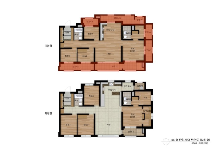 총 107가구가 분양되는 전용 100㎡타입에는 전 가구 3면 발코니 설계가 적용돼 전체 확장 시 약 37㎡의 실사용 면적이 추가돼 보다 넓은 공간을 사용할 수 있는 장점이 있다.