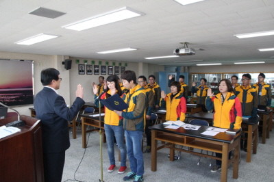 인천학생교육원은 최근 직원월례조회에서 전직원이 참석한 가운데 공직자의 청렴마인드 제고를 위해 반부패 청렴서약 및 청렴실천 결의대회를 개최하고 공정하고 객관적인 직무수행과 금품·향응수수 근절 및 검소한 생활을 실천해 신뢰받는 공직풍토조성에 앞장설 것을 다짐하며 결의문을 낭독했다. 사진은 이날 행사에 참가해 결의문을 읽는 직원들의 모습. (사진제공=인천시교육청)