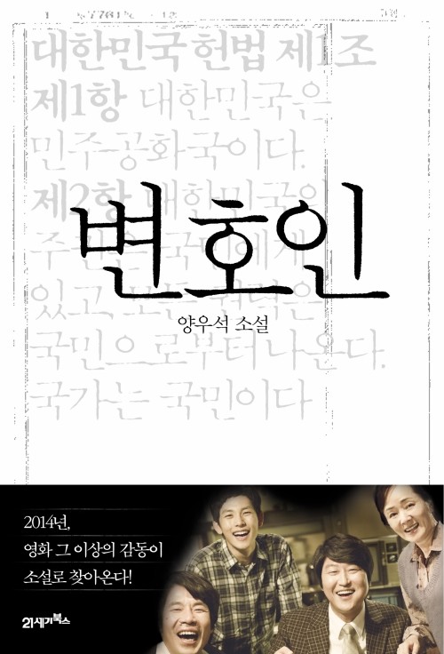 지난해 극장가를 뜨겁게 달군 영화 변호인의 시나리오와 연출을 맡은 양우석 감독이 집필한 소설 <변호인>이 최근 발간돼 독자들을 찾아왔다.
