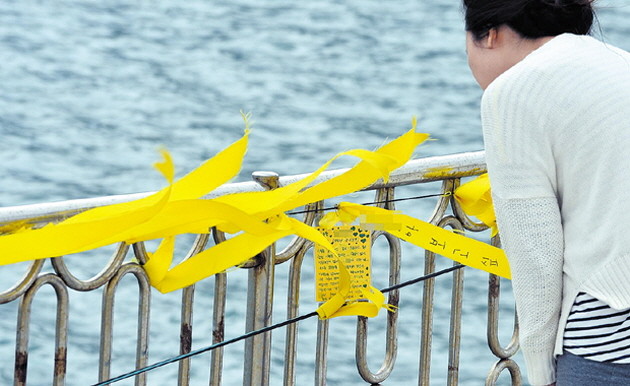 세월호 침몰사고 23일째, 어버이날인 8일 오전 전남 진도군 임회면 팽목항 선착장에 한 실종자 가족이 대답없는 아들에게 보낸 편지가 노란리본과 함께 걸려있다. 이 편지에는 “내 아들을 못 알아볼까 겁난다. 마지막으로 온전한 모습 보여주라. 먼저 보내서 미안해”'라는 내용이 적혀 있다.