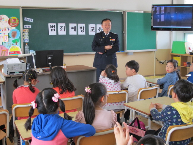 충남 아산시 신리초등학교는 지난 7일 학생들을 대상으로 학교 폭력의 위험성과 예방법, 그리고 학교 폭력이 발생했을 시 대처행동을 다양한 사례와 동영상을 통해 배워보는 '범죄예방교육'을 실시했다. 이날 교육에는 아산경찰서 최한옥 경사가 강사로 나섰다. (사진제공=아산교육지원청)