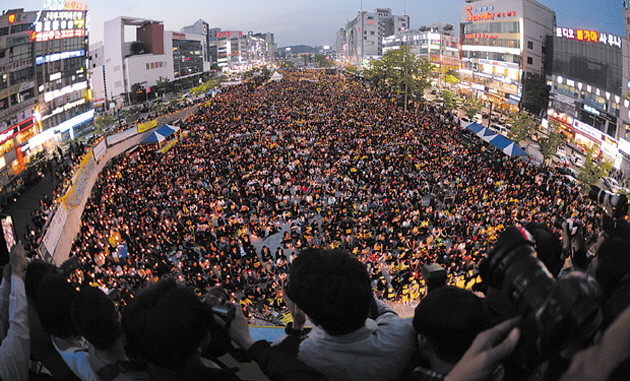 세월호 침몰사고 문제해결을 위한 안산시민사회연대 회원들과 가족들이 10일 오후 경기도 안산문화광장에서 사고 희생자들을 추모하는 촛불문화제 ‘끝까지 밝혀줄게-국민촛불 켜기’를 진행하고 있다.