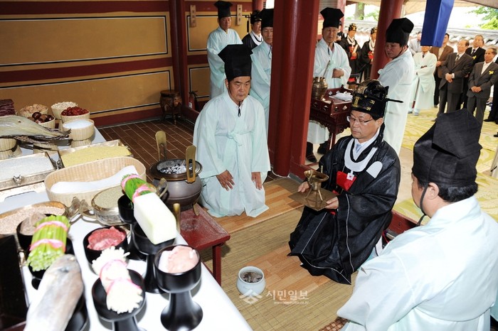 지난 11일 경기 오산시 궐동의 권리사 성묘에서 전통문화를 계승·발전시키고 공자의 학덕과 유풍을 기리기 위해 매년 봄·가을에 시행되는 석전대제가 열려 150여명의 관계자와 주민들이 참여했다. 사진은 이날 열린 춘기 석전대제의 모습. (사진제공=오산시청)