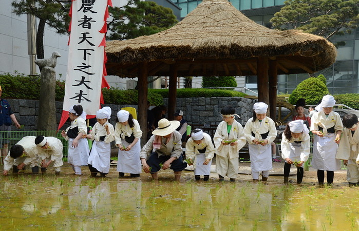 서울 서대문 농협 농업박물관은 소만을 앞두고 12일 어린이들과 함께 도심속에서 직접 손모내기를 하는 체험행사를 실시하고 있다.이번 행사에는 서대문구 미동초등학교 3학년 30명이 참가해 직접 못줄을 잡고 줄에 맞춰 손모내기를 하며 과거 선조들이 마음을 모아 모내기를 했던 협동정신을 배우고 있다.
