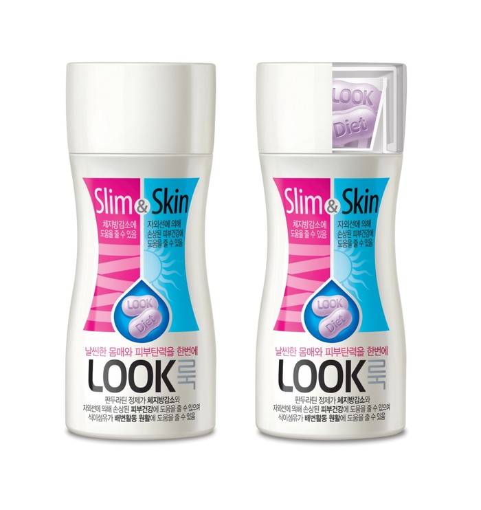 ‘날씬한 몸매와 피부탄력을 한번에’ 잡을 수 있다는 콘셉을 표방한 새로운 ‘LOOK’은 다이어트와 피부건강에 도움을 주는 건강기능성 식품인 판두라틴은 알약 형태로, 석류농축액과 건강기능식품인 식이섬유(난소화성말토덱스트린)성분을 액상 형태로 한 병에 담았다.