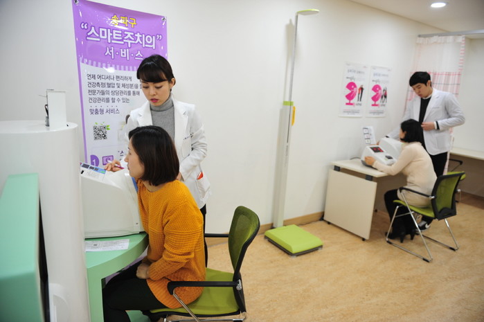 | ▲ 송파보건소를 방문한 주민이 '스마트주치의 서비스'를 이용하고 있는 모습. | ||