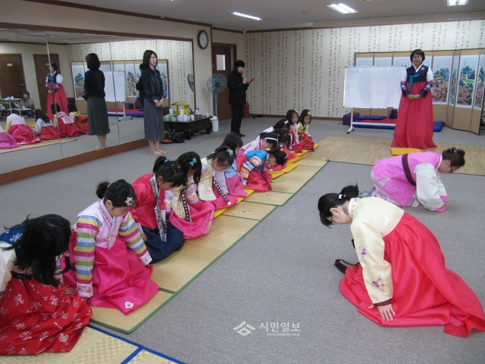[시민일보=시민일보 기자]경기 부천대명초등학교는 지난 12일 교사, 학생, 학부모가 함께하는 1학기 예절체험교실 운영을 시작했다. 오는 28일까지 이어지는 예절교육은 어린이들의 인성교육에 중점을 두고 바른행동을 생활화시키기 위한 목적으로 마련됐다. 1학기 예절교육은 공수 및 절하기 체험을 주 내용으로 한다. (사진제공=부천교육지원청)