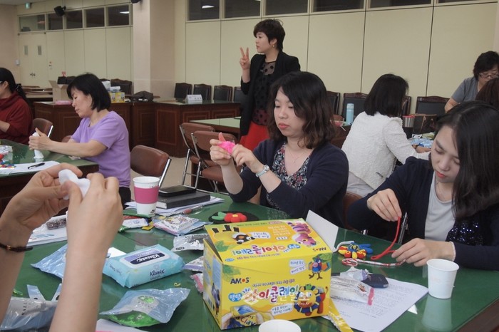 최근 경기 광주 하남교육지원청의 Wee센터가 도교육청 3층 대회의실에서 Wee프로젝트 종사자들을 대상으로 '미술치료를 통한 전문상담 역량 강화 연수'를 실시했다. 사진은 이날 교육에 참여한 대상자들이 점토를 활용한 치료법을 배우고 있는 모습. (사진제공=경기도교육청)