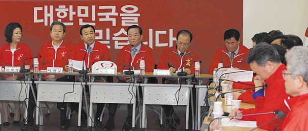 21일 오전 서울 여의도 새누리당사 2층 강당에서 열린 중앙당-시도당 선거대책위원회 연석회의에서 이완구 선대위원장이 모두발언을 하고 있다.