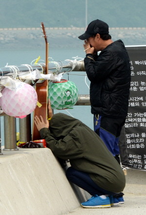 세월호 침몰사고 37일째인 22일 전남 진도군 팽목항에서 실종자 가족들이 오열하고 있다.