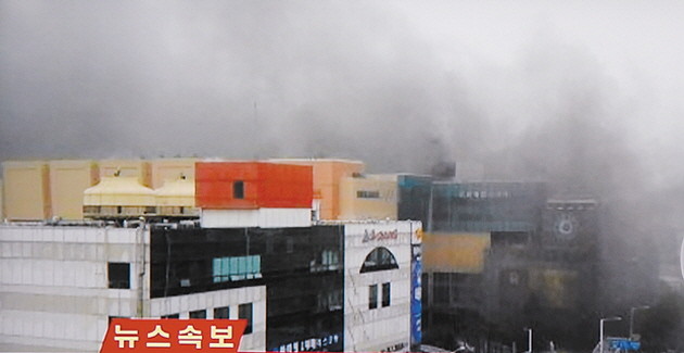 26일 오전 경기도 고양시 일산 고양종합터미널 건물에서 큰불이생해 현재 진화하고 있다. 지하철 3호선은 일산 백석역을 무정차하고 있다. (사진=YTN 캡쳐)