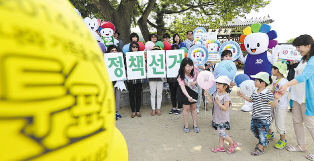 6.4지방선거를 8일 앞둔 27일 오후 경기 수원지역 선거관리위원회가 화성(華城) 행궁 앞에서 유권자들에게 ‘후보자 바로알고 투표하기’캠페인을 벌이고 있다.