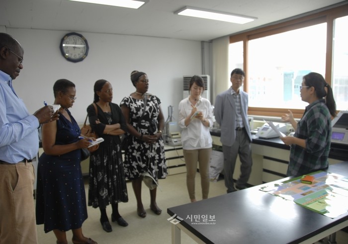 [시민일보=시민일보 기자]경기 여주시 농업기술센터는 지난 28일 아프리카 우간다 농업연구청 대표단 일행의 농업기술협력 교류를 위한 방문을 받았다. 이날 아프리카 우간다 농업연구청 부청장 등 고위공무원단 4명이 방문해 여주 농업현황 홍보물을 시청하고 연구실 및 실습포장 등을 견학했다. (사진제공=여주시청)