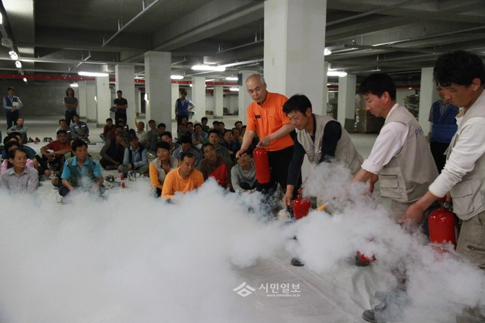 서울 구로소방서는 지난 5월30일 성북구에 위치한 금호건설 돈암5구역 재개발아파트 공사현장에서 직원 및 협력업체 근로자 100여명을 대상으로 응급처치 실습교육 등을 실시했다. 이번 실습교육은 심폐소생술, 하임리히법, 소화기 사용법 등 공사현장은 물론 각 가정내에서 응급상황 발생시 당황하지 않고 침착하게 소중한 생명을 구할 수 있게 실습 위주로 진행됐다. (사진제공=구로소방서)
