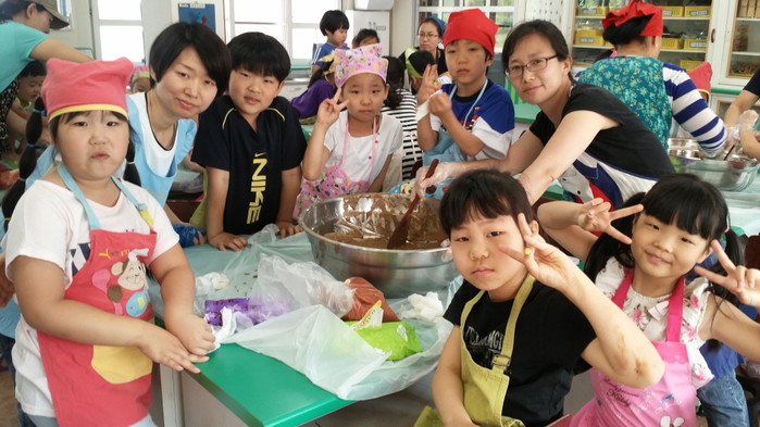 충남 아산시 금곡초등학교는 최근 학부모 학교참여 지원사업 '엄마 품! 토요 생생체험교실'의 일환으로 '엄마 품! 건강 요리 교실' 프로그램을 진행했다. 이날 행사에 참가한 20여명의 학생은 한국의 '전통장'인 고추장을 담그는 방법을 배웠다. (사진제공=아산교육지원청)