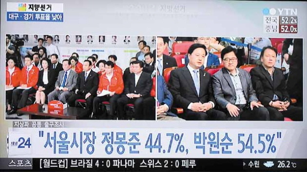 6.4 전국동시지방선거 방송3사 출구조사가 발표됐다. 서울시장 후보는 박원순 54.5%, 정몽준 44.7%.