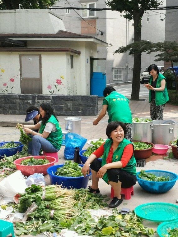 성동구 마장동 새마을부녀회가 9일 오전 동마장어린이공원에 모여 밑반찬과 열무김치를 직접 만들어 지역내 형편이 어려운 홀몸노인과 저소득 부자가정 50가구에 전달했다. 사진은 열무김치를 담그고 있는 부녀회의 모습.(사진제공=성동구청)