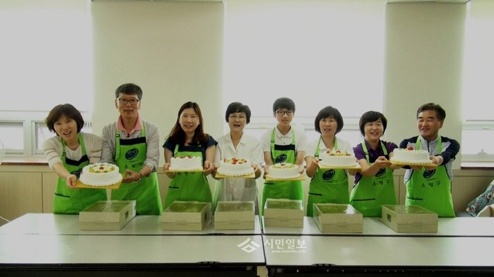 서울 은평구 가족봉사단은 지난 7일 구청 자원봉사교육장에서 자원봉사자 10여명이 참여한 가운데 생일을 맞이한 지역내 홀몸노인들에게 전달할 생일케이크를 만들었다. 이날 만들어진 케이크는 홀몸노인들과 결연을 맺은 공무원 가족이 노인들을 방문해 전달했다. (사진제공=은평구청)
