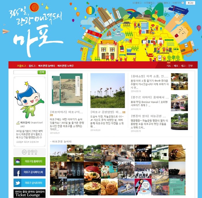 마포구가 운영하고 있는 마포관광블로그는 관광객들은 물론 지역내 주민들도 잘 모르는 소소한 관광자원을 상세히 다뤄 알뜰한 정보를 제공한다.