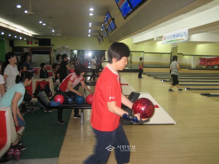 최근 인천 중구는 주민들이 체력증진을 통해 활기찬 일상생활을 누릴 수 있도록 체육활동을 지원하는 '2014년도 상반기 무료 주민생활체육교실'을 열어 수영·볼링교실 등의 생활체육지도를 시작했다. 사진은 볼링교실에 참여한 주민들이 송학동 크라운볼링장에서 교습을 받고 있는 모습.(사진제공=인천중구청)