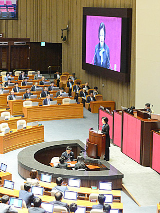 12일 오전 제325회 국회(임시회) 본회의가 열린 서울 여의도 국회 본회의장에서 박영선 새정치민주연합 원내대표가 교섭단체 대표연설을 하고 있다.
