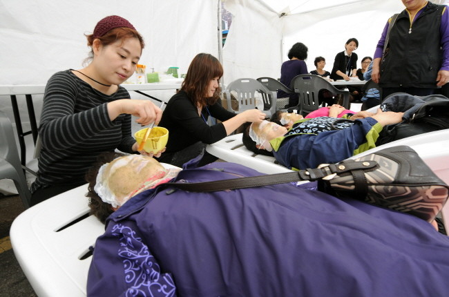 | ▲ 2013 한방문화축제 당시 체험부스에서 한약재를 이용한 한방팩 체험을 하고있는 관광객들의 모습. | ||