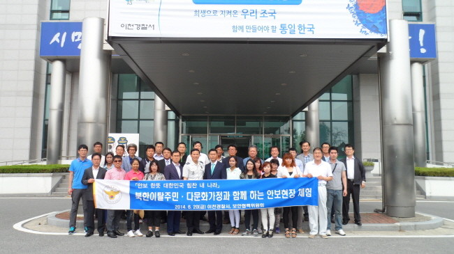 경기 이천경찰서는 지난 20일 6월 호국의 달을 맞아 북한이탈주민, 다문화가정, 보안협력위원들과 함께 분단의 아픔이 있는 판문점을 견학해 안보의식 고취와 국가안보의 중요성을 체험하는 '안보체험교육'을 실시했다. 사진은 이날 판문점을 방문한 교육 참가자들의 모습. (사진제공=이천경찰서)