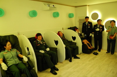 경기 오산소방서는 지난 19일 소방공무원과 의용소방대원들의 외상후 스트레스증후군(PTSD) 치유를 위한 자가 심리치료실 '새물내'와 '마음의 쉼터' 2곳을 열고 운영에 들어갔다. 사진은 이날 문을 연 자가 심리치유실을 방문한 오산소방서 관계자들의 모습. (사진제공=오산소방서)