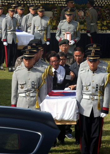28일 오전 경기 성남시 분당구 국군수도병원 연병장에서 '고성 GOP 총기난사 희생자 합동영결식'이 엄수되고 있다.