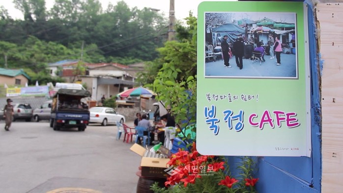 | ▲ 북정마을에 조성된 북정카페의 간판. 북정카페는 마을사람들의 쉼터 역할을 하고 있는 곳이다.(사진제공=성북구청) | ||
