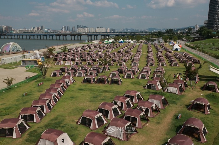 | ▲ 여의도 캠핑장에 다수의 텐트가 마련돼 있는 모습.(사진제공=서울시 홈페이지) | ||