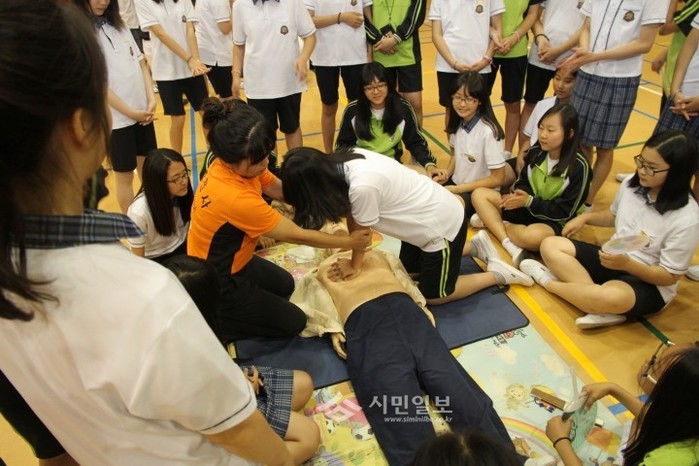 서울 동작소방서는 지난 10일 오후 1시 서울 동작구 신대방동에 위치한 대방중학교 강당에서 1학년 300여명을 대상으로 '여름철 물놀이시 안전관련 내용과 심폐소생술 실습 등의 소방안전교육'을 실시했다. 대방중학교의 요청으로 이뤄지는 이번 소방안전교육은 15일까지 세차례 더 실시할 예정이다. (사진제공=동작소방서)