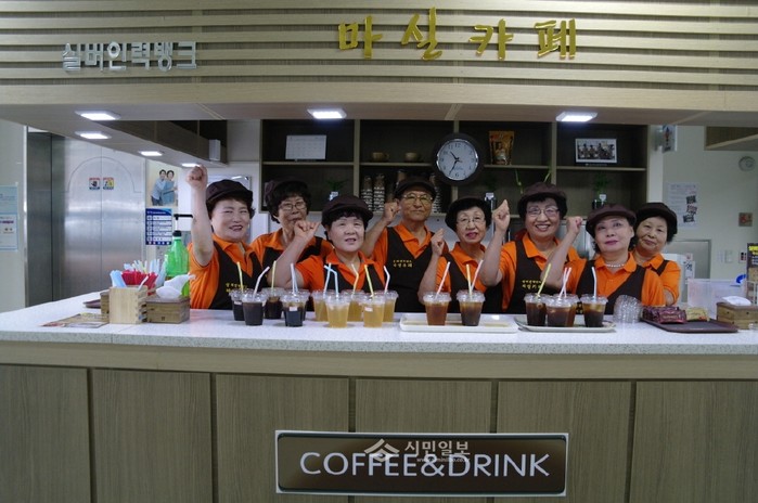 지난 14일 경기 양평군 노인복지관 부설 실버인력뱅크가 김용녕 대한노인회 양평군지회장 및 관계자 50여명이 참석한 가운데 노인 일자리창출을 위한 시장진입형 '마실카페' 오픈 행사를 열었다. 사진은 이날 행사에 참석한 관계자들의 모습. (사진제공=양평군청)