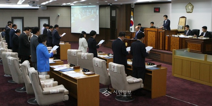 | ▲ 지난 17일까지 열린 제218회 임시회에서 세월호 특별법 제정을 촉구하는 결의안이 채택 중인 의원들의 모습. | ||