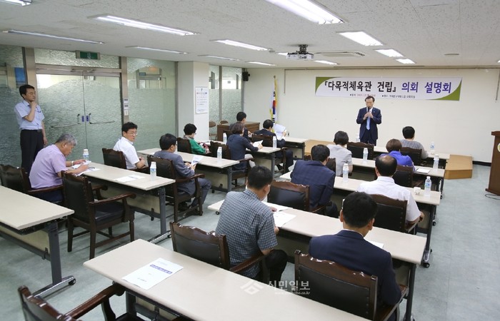 지난 21일 서대문구청 문화체육과 주관으로 홍은동 한마음체육관 부지에 조성 추진 중인 '다목적 체육관 건립사업에 따른 설명회'가 서대문구의회 소회의실에서 개최됐다. 이날 행사에는 서대문구의원 전원이 참석해 사업현황과 추진계획 등을 보고받았다. (사진제공=서대문구의회)