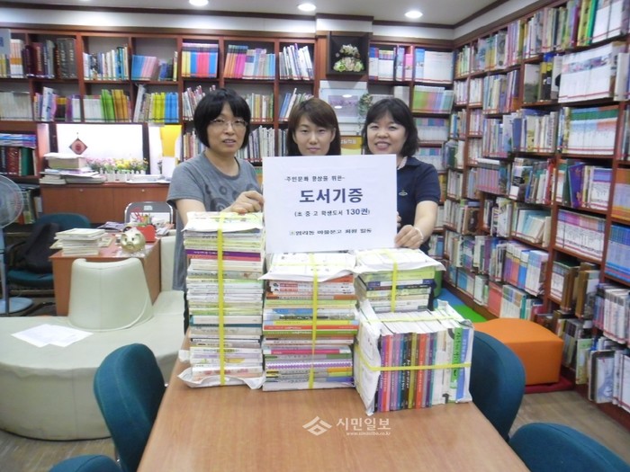 서울 마포구 염리동 마을문고 운영위원회는 최근 주민들이 함께 다양하고 좋은 책을 읽기를 바란다며 회비를 모아 구입한 130권의 책을 염리동 마을문고에 기증했다. 사진은 이날 책을 기증한 염리동 마을문고 운영위원회 관계자들의 모습.