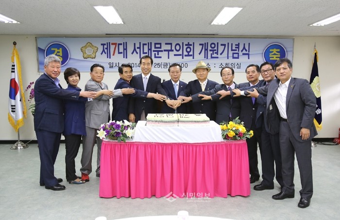 지난 25일 서울 서대문구의회는 구의회 1층 소회의실에서 류상호 의장, 홍길식 부의장을 비롯한 현역의원 15명과 역대 의장단, 문석진 서대문구청장 등 약 100여명의 내·외빈이 참석한 가운데 '제7대 서대문구의회 개원식'을 개최했다. (사진제공=서대문구의회)