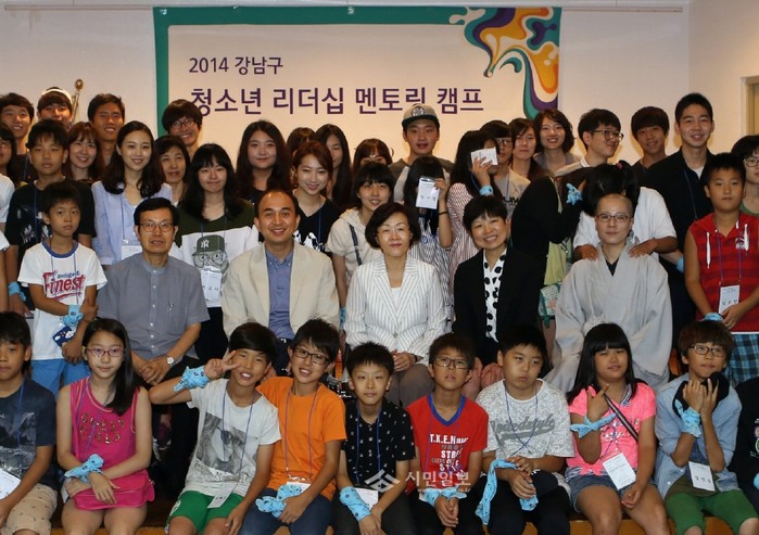서울 강남구가 지난 26일 청소년수련관에서 열린 청소년 리더십 멘토링 캠프를 실시했다. 이날 신연희 강남구청장은 캠프에 참가한 청소년들에게 “이번 리더십 캠프와 멘토링 프로그램을 통해 서로의 무한한 잠재력과 자신감을 일깨우고 자신의 가치를 한층 더 높이길 바란다”는 격려의 메시지를 남겼다. 사진은 청소년 리더십 멘토링 캠프 기념촬영 모습.(사진제공=강남구청)