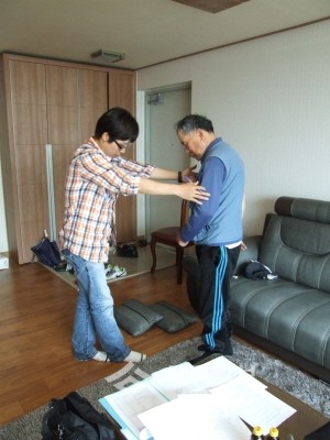 | ▲ 일상생활 능력을 높이고 추가 부상을 예방하기 위해 가정을 방문해 재활운동을 돕는 모습. (사진제공=양천구청) | ||