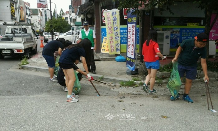 경기 고양시 일산동구 백석1동 주민센터는 지난 10일 여름방학을 맞이한 청소년들과 새마을지도협의회 회원, 공무원 등 50여명이 참여한 가운데 지역내 이면도로의 무단 쓰레기 수거와 청사 주변의 잡초 제거 등 환경정비를 실시했다. 사진은 환경정비를 실시하고 있는 청소년들의 모습. (사진제공=고양시청)