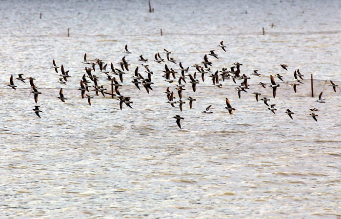 전남 순천만에 찾아온 노랑발도요떼. 순천시는 13일 세계 5대 연안습지이자 생명의 보고인 전남 순천만에서 저어새, 팔색조, 알락꼬리마도요 등 다양한 여름철새와 나그네새가 관찰되고 있다고 밝혔다. (사진제공=순천시청)