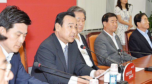 20일 오전 서울 여의도 국회 새누리당 대표실에서 열린 최고중진연석회의에서 이완구 원내대표가 세월호 관련 재협상은 없다고 이야기하고 있다.