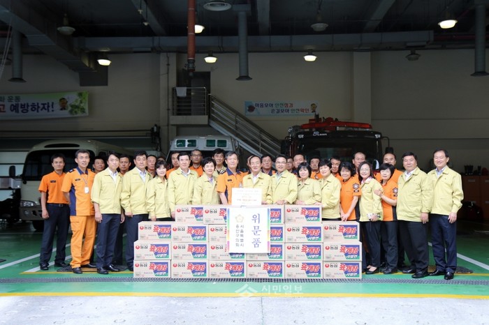 지난 19일 서울 용산구의회 박길준 의장과 의원들은 '2014년 을지연습' 참관과 근무자 격려를 위해 용산경찰서, 용산소방서, 용산구청을 차례로 방문해 관계 공무원들과 만나 격려의 말을 전하고 위문품을 전달했다. (사진제공=용산구의회)