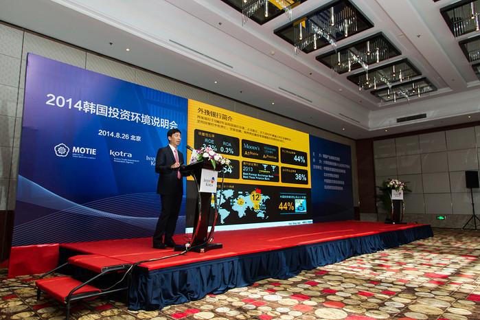 | ▲ 지난 26일 베이징에서 열린 KOTRA 주최 '서비스산업 중국 투자 유치 설명회'에 금융대표단으로 참여한 외환은행 외환업무부 임진욱 차장이 한국의 위안화 허브 추진 현황과 전망에 대해 설명하고 있다. | ||