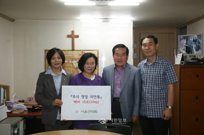 서울 서초구의회는 지난 2일 우리 고유의 민속 명절인 추석을 맞아 ▲다니엘복지원 ▲새빛맹인재활원 ▲신망애의집 ▲무료급식시설인 우면종합사회복지관 등 지역내 위치한 사회복지시설을 방문해 일반미(쌀) 90포를 전달했다. (사진제공=서초구의회)