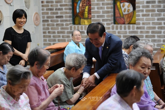 | ▲ 지난 3일 김진우 수원시의장이 노인복지시설 ‘아네스의 집'을 방문해 노인들을 격려하고 있다. (사진제공=수원시의회) | ||